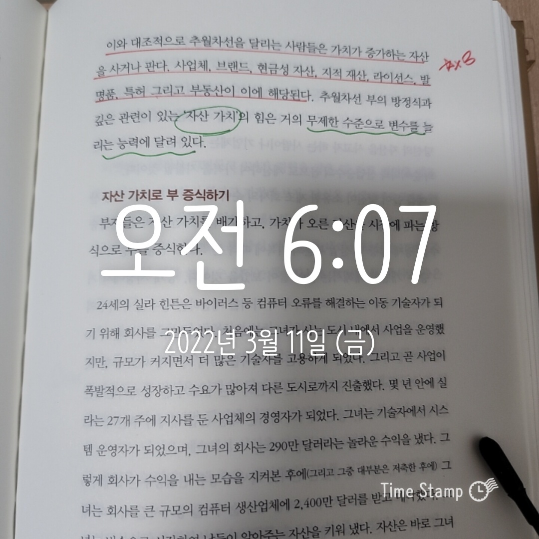 P.163 추월차선을 달리는 사람들은 가치가 증가하는 자산을 사거나 판다. 사업체, 브랜드, 현금성 자산, 지적 재산, 라이선스, 발명품, 특허 그리고 부동산이 이에 해당된다.