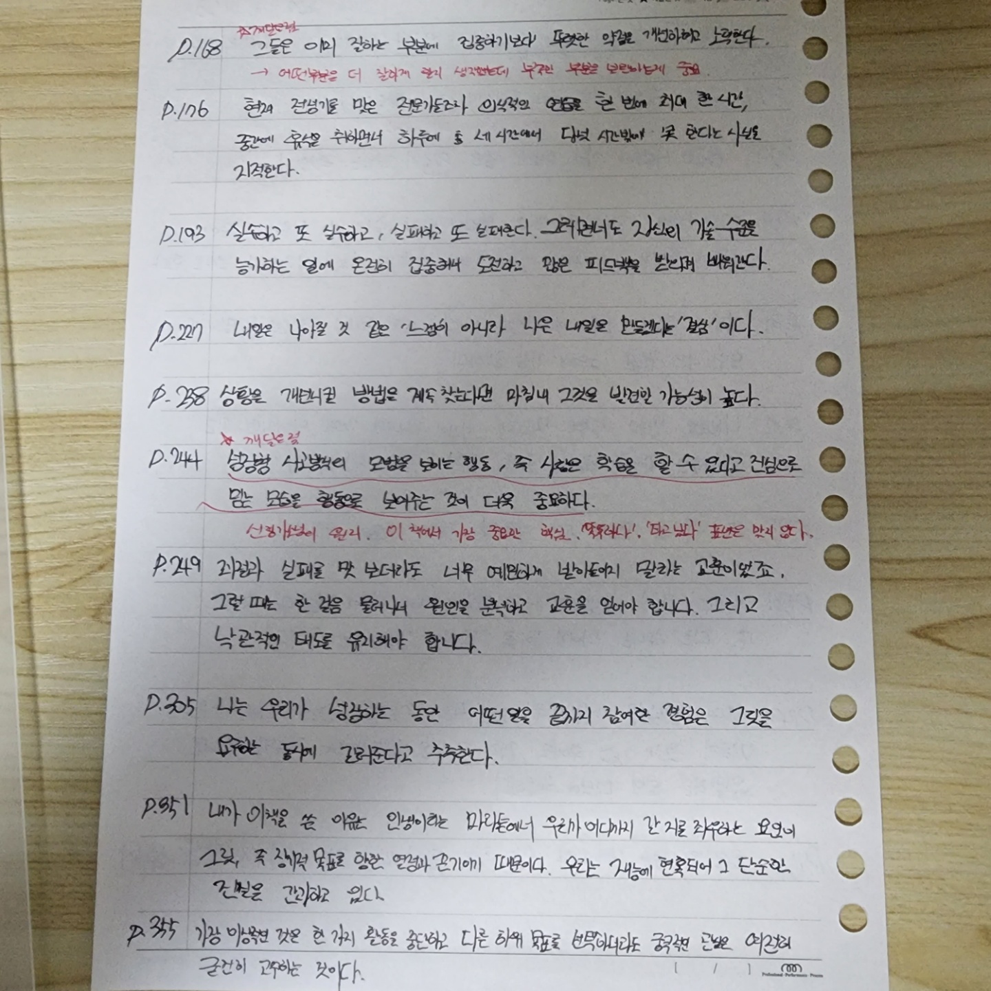 P.227 내일은 나아질 것 같은 '느낌'이 아니라 나은 내일을 만들겠다는 '결심'이다.