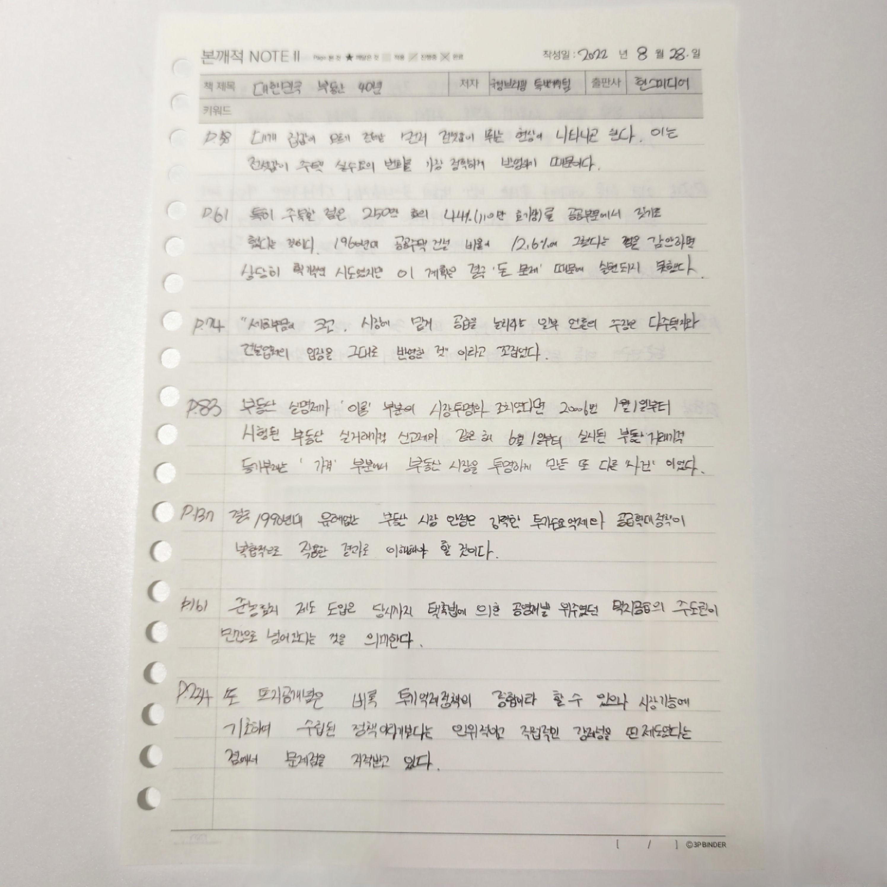 이 책은 2007년 국정브리핑 특별기획팀에서 만든 책으로, 40년 동안의 부동산 흐름과 정책들을 다루고 있다. 책을 구매하여 보고 싶었으나, 이미 단종이 되었고 중고로 구매하려면 10만 원 넘게 든다는 점에서 국회도서관 우편 복사를 신청하기로 했다. (다행히도 여자 친구가 국회도서관에서 제본해서 전달해주어 신청할 수고를 덜었다)