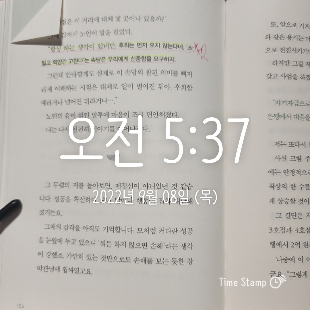 P.154 항상 하는 생각이 있네만, 후회는 먼저 오지 않는다네. '소 잃고 외양간 고친다'는 속담은 우리에게 신중함을 요구하지.